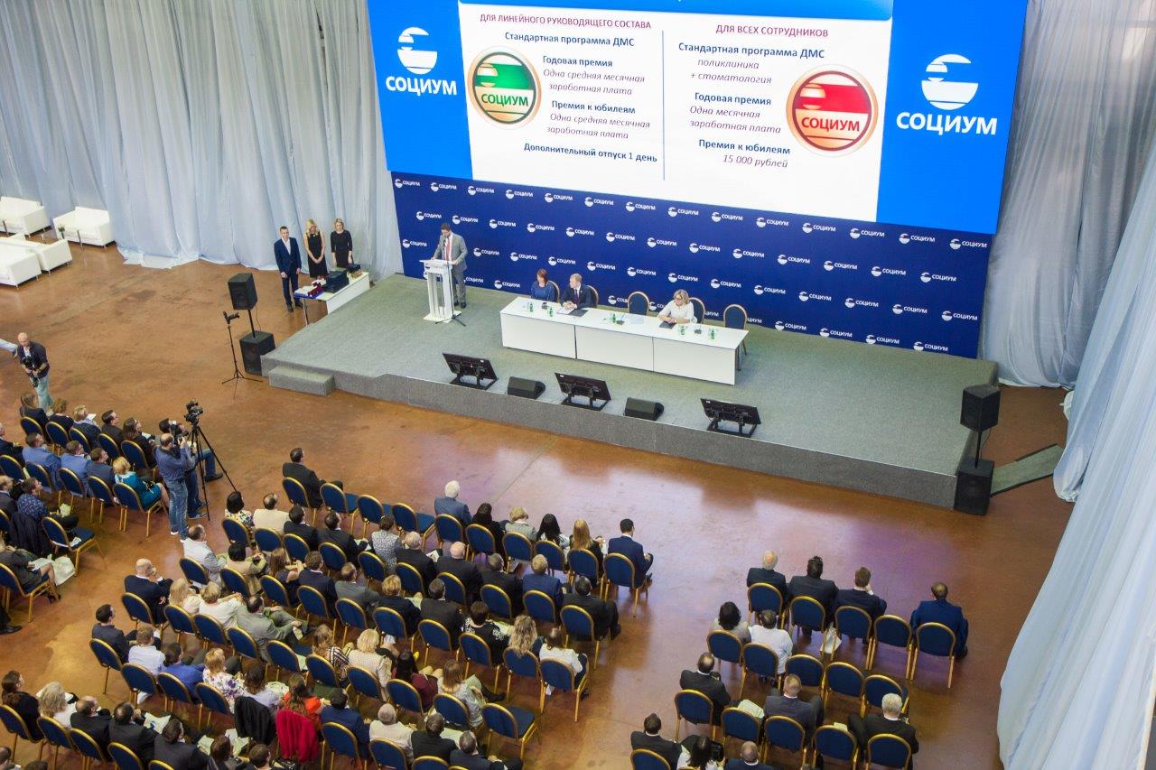 Один из примеров поддержки персонала – награждение знаком Ветеран «Социума». На конференции его вручили преданным сотрудникам, кто проработал в корпорации более 10, 15, и 20 лет. Вместе со знаком работникам положена прибавка к зарплате, дополнительные дни к отпуску и премия.