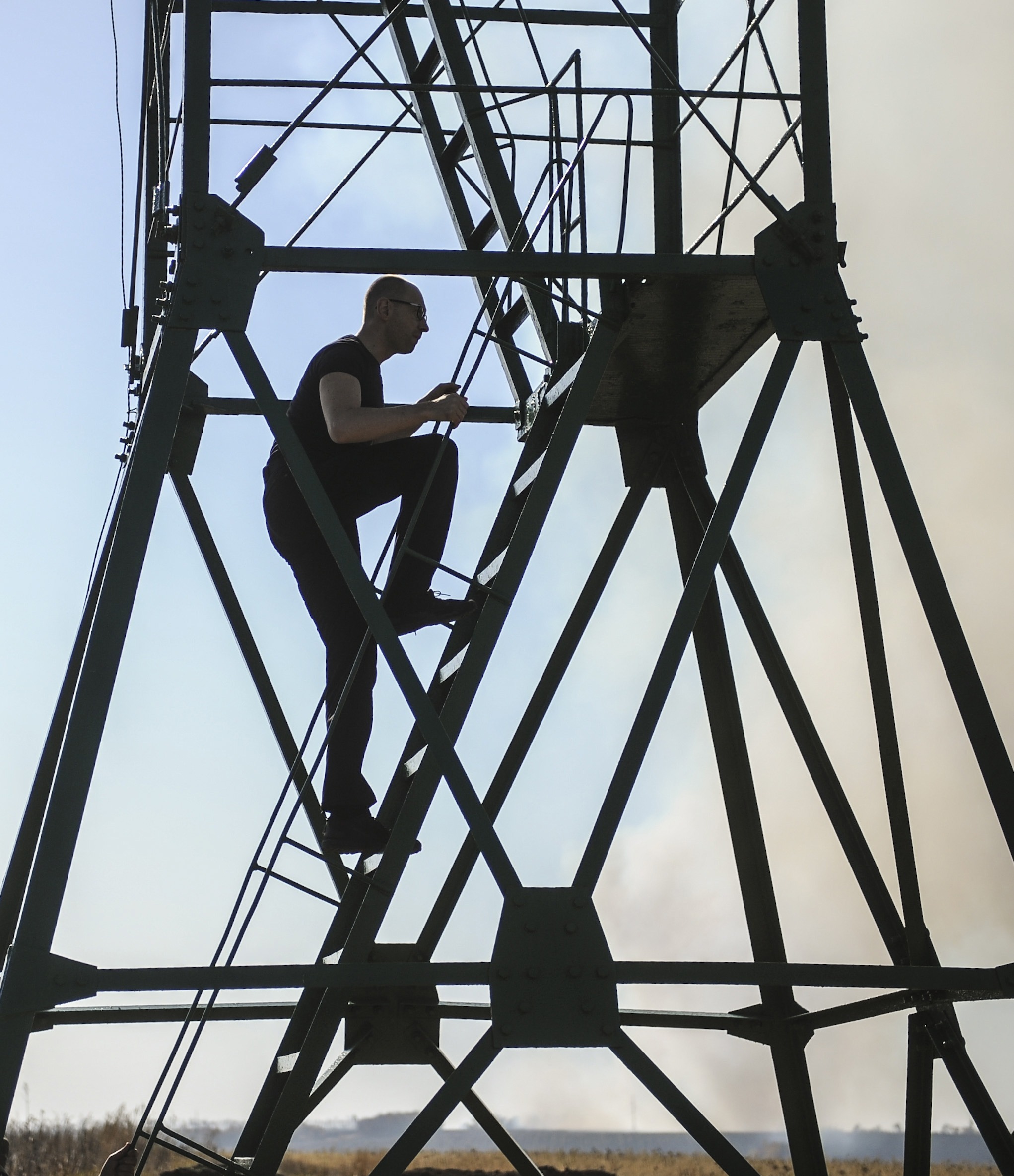 Арсений Яценюк поднимается на смотровую башню. Фото: Reuters