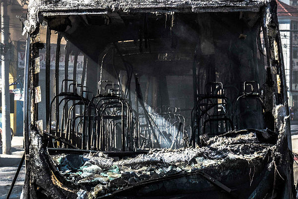 В салоне автобуса находились 30 пассажиров. Все они успели покинуть салон, и никто не пострадал. Однако автобус выгорел полностью. На месте находятся сотрудники экстренных служб.