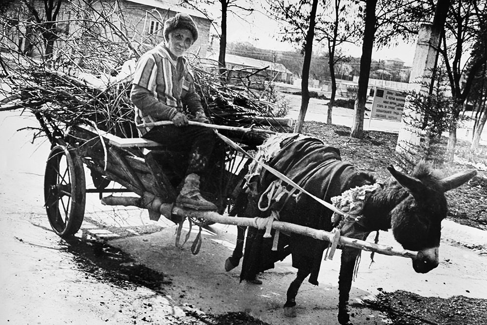 Эту картину репортер «Труда» подглядел в горном ауле: человек на арбе, в которую впряжен ослик, везет домой хворост. На тот момент мы были соотечественниками.
