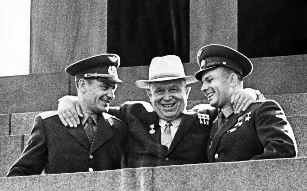 Хрущевская оттепель и космическая весна оказались тесно связаны одной эпохой. Никита Сергеевич с первыми космонавтами. Тот случай, когда счастье объединяет всех – и вождей, и народ.