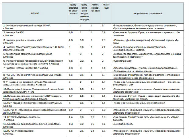 Исходные данные получены с использованием открытой информации, размещенной на интернет-ресурсах исследуемых колледжей. Проведено электронное анкетирование работодателей и представителей рекрутинговых агентств. Затем группа экспертов Росрейтинга провела анализ полученной информации (методика приведена на сайте Росрейтинга).