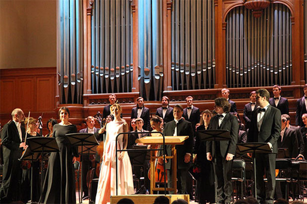 Александр Сладковский (в центре) и другие участники ансамбля после исполнения Торжественной мессы Моцарта