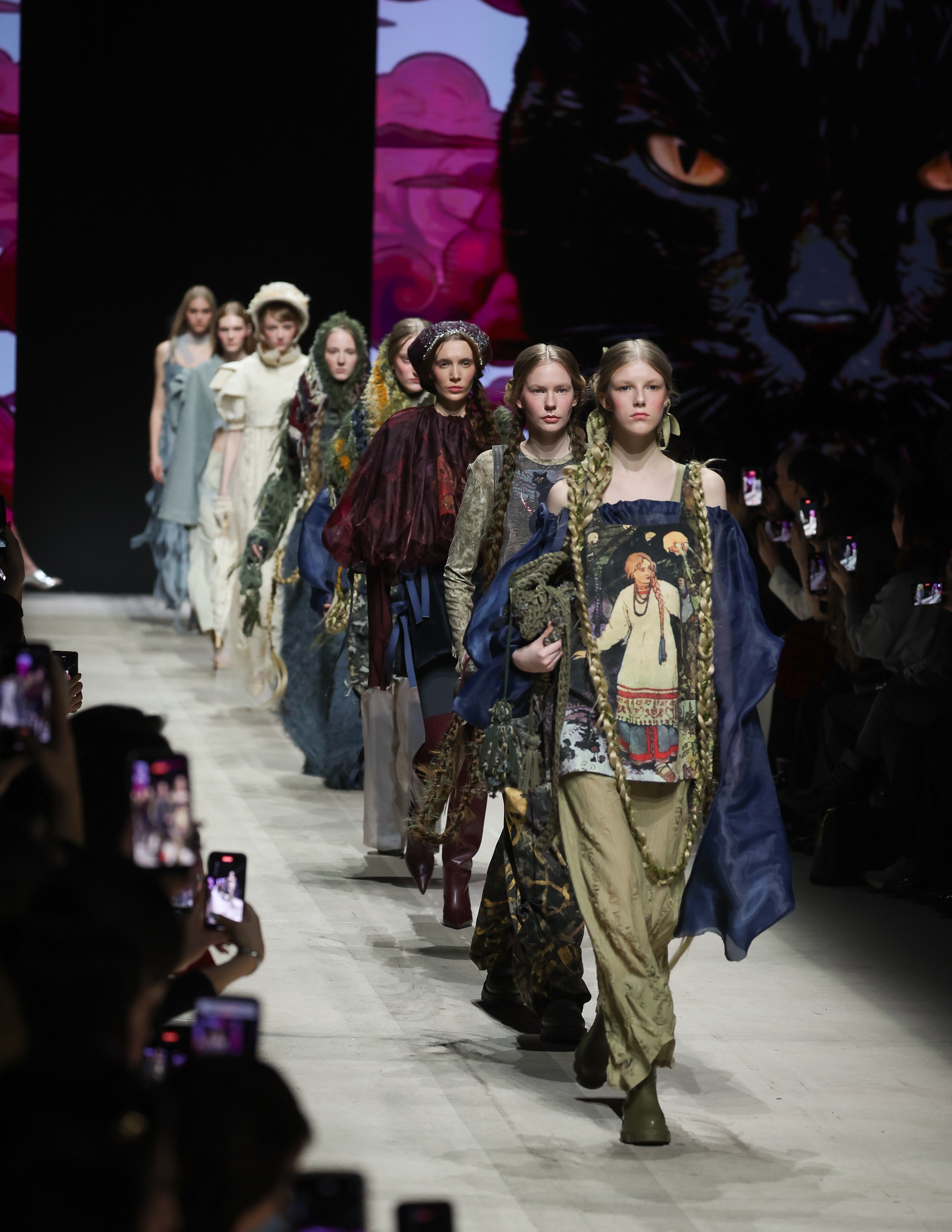 Многие бренды опирались на культурные коды, философию, мифологию, а также рассуждали о технологическом прогрессе и мире будущего. Так, на подиумах русский культурный код переплетался с киберпанком, морская эстетика — с вечерней элегантностью, а ретро-футуризм — с современным минимализмом.