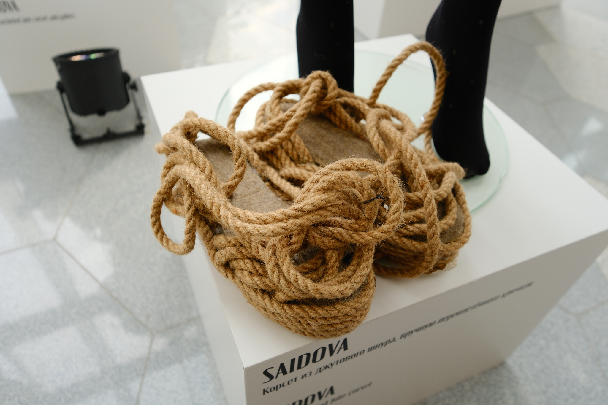 Дизайнер бренда SAIDOVA Айшат Саидова из Махачкалы использовала вязание и технику макраме в работе со джутовым шнуром для создания своей коллекции. «Ключевые элементы — это джутовый шнур, вывязанный и переплетенный вручную. Машинное производство не может передать ту уникальность и фактуру, которая возникает при ручной работе. На один образ уходит от двух до трёх недель кропотливого труда», — говорит Айшат.
