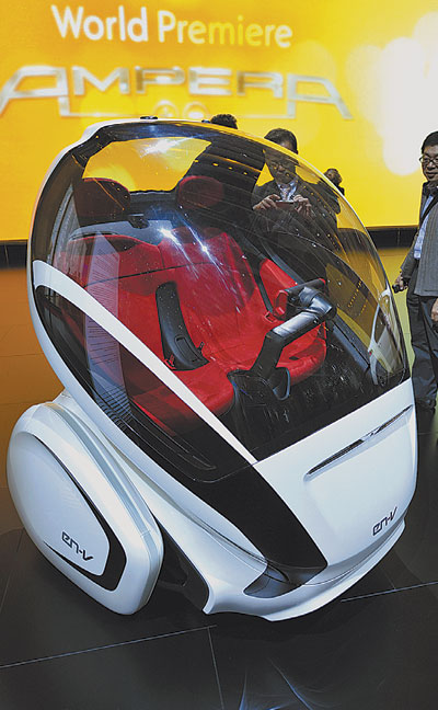 Свой вариант городского авто представил Opel. В электромобиле EN-V два места. Его скорость – 40 км/ч, он может двигаться на автопилоте, пока пассажиры листают интернет на встроенном компьютере.