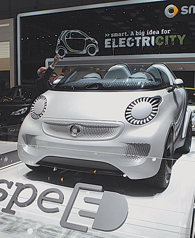 Концептуальный электрический родстер Smart Forspeed открывает новую страницу дизайна маленьких машин. Излишеств нет, при этом детали уместны и необычны. Решетка радиатора, словно из пчелиных сот, улыбается посетителям. Автомобиль вобрал все последние тенденции автомоды. В задней части кузова концепта расположен 40-сильный электромотор, на крыльях присутствуют солнечные батареи. Для подзарядки от розетки авто требуется всего 45 минут.