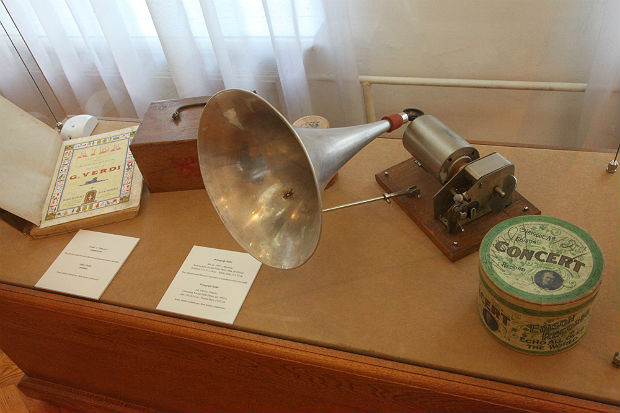 Кое-что можно даже послушать. Конечно, не сами эти валики — они как раритеты упрятаны в стеклянные стенды. Но интерактивная витрина позволяет посетителям самим выбрать эпоху, произведение, исполнителя — и сравнить, как, например, звучит финальная ария из «Отелло» в фонографической фиксации 1900-х годов (поет Франческо Таманьо), песенка Герцога из «Риголетто» на грампластинке 1903-го (французский тенор Огюст Афр) или фрагмент из той же «Силы судьбы» на СD 1990-х (Ольга Бородина). А благодаря видеоэкранам оживают кинозаписи Артуро Тосканини, Марио дель Монако и других легендарных исполнителей...