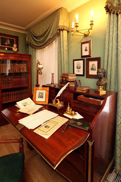 В кабинете Василия Львовича Пушкина непременные книжные шкафы и рабочее бюро. Хозяин кабинета не мыслил себя без чтения и сочинений. Фото предоставлено пресс-службой Гос.музея А.С.Пушкина