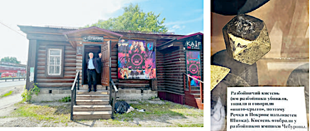 А вот на самом доме никакой мемориальной доски сегодня нет. Вместо нее внимание прохожих и проезжающих привлекают прикрепленные к стенам аляповатые рекламные щиты, зазывающие отведать заморские блюда: всякие суши-пиццу-роллы. Их подают в бывшем доме Чебурова, ныне превращенном в кафе-забегаловку. Будет большим преувеличением сказать, что вокруг дома царят чистота и порядок. А за его задней стеной и вовсе устроена настоящая свалка. Жаль! Если уж открывать в чебуровской избе нечто общепитовское для современных ямщиков, мчащихся по здешнему тракту, то больше подошел бы придорожный трактир с щами-пельменями-окрошкой. Но пока дом стоит в таком облике, который мало напоминает о Чебуровых и других прославивших Покров ямщицких династиях.