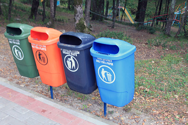 Орлят постоянно приучают бережно относиться к природе и заботиться о чистоте. Такие мусорные баки стоят по всему лагерю. Фото: Георгий Настенко