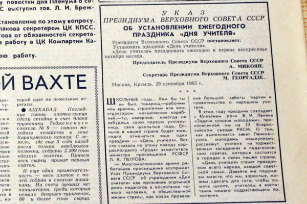 Ранее этот профессиональный праздник выпадал на первое воскресенье октября. Неизменно в первое воскресенье октября День учителя отмечают в Азербайджане, Беларуси, Казахстане, Кыргызстане, Латвии, на Украине. В 2002 году почта Канады выпустила памятную марку в честь Всемирного дня учителя.