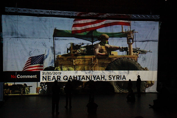 Зажигается гигантский экран, куда проецируют сегодняшние кадры Euronews из рубрики «Без комментариев»: наводнение в Красноярском крае, пожары в Калифорнии, беспорядки в Пакистане…