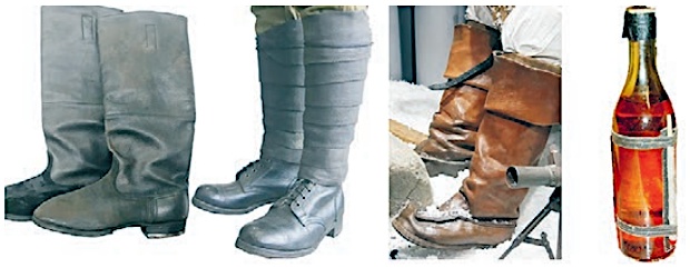 Причиной неудач первого этапа Зимней войны часто называют сильные морозы. Но дело не столько в погоде, сколько в одежде. На фото сапоги уставные и ботинки с обмотками наших солдат — и пьексы финских. Помимо этого, у них — теплые шапки, у нас — буденовки, а если повезет — шапочки-подшлемники. У них — свитера с длинными рукавами на случай потери перчаток, у нас — шинели, гимнастерки, тонкое белье. Валенки, стеганые штаны и ватные подбушлатники появились только к концу войны.