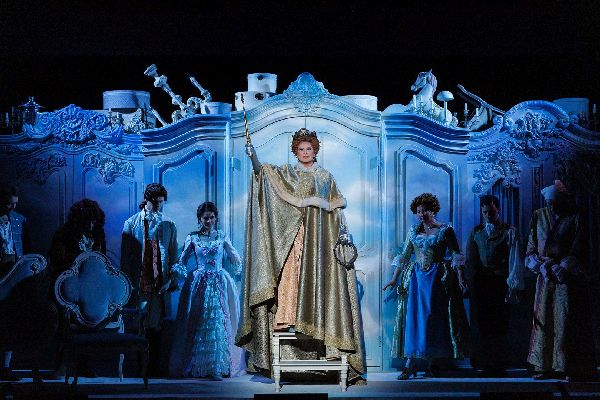 Здесь очень важно в актерских импровизациях сохранять идейный смысл, заложенный в комедии и соблюдать меру, как это делает Владимир Дубровский, создавая образ выжившего из ума дворцового шаркуна в нелепом парике Людовика Х1У, сползающем на глаза, отчего он плохо видит и распознает собеседников по голосам. Впрочем, он слышит только себя, бесконечно напоминая, что без него свадьба племянника не состоится.