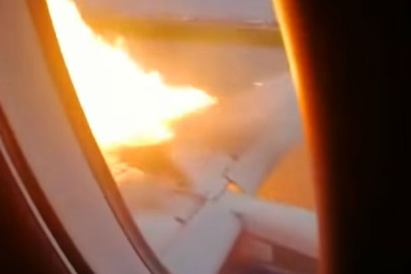 Кадры снял один из пассажиров. На них видно, как огонь охватил крыло самолета. «Ох, жесть…», - раздался комментарий, судя по голосу – молодого человека.
