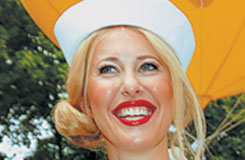 Как всегда, больше всего удивила гостей конкурса Ксения Собчак. Она предстала в образе "подружка моряка". Наряд ей придумала российский дизайнер Ульяна Сергиенко.