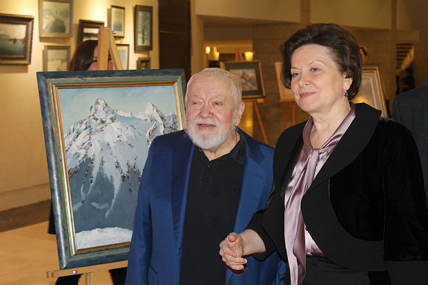 Президент фестиваля, народный артист России Сергей соловьев и губернатор ХМАО Наталья Комарова на выставке картин Станислава Говорухина