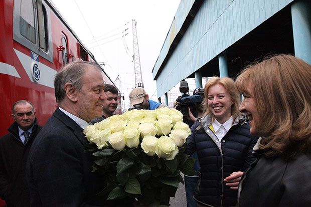 Тот самый багажный вагон, в котором путешествуют ноты и инструменты оркестра Мариинского театра. Фото здесь и далее Сергея Бирюкова