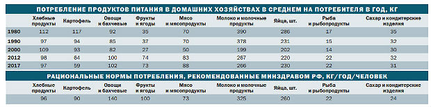 Другая проблема — серьезная нехватка в рационе россиян овощей (норма — 140 кг, потребление — 102) и фруктов (норма — 100, потребление — 73). Удивительно, но даже картофеля мы стали есть меньше. А он в России всегда был палочкой-выручалочкой. А теперь: В 2017-м — 59 кг на человека при норме 90. Причем около половины граждане вырастили сами. Возможно, меняются вкусы?