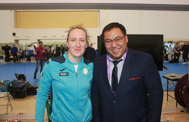 Трёхкратная победительница «Москва — Вселенная каратэ» Софья Берульцева и главный тренер сборной Казахстана Бахтияр Тохсиитов. Фото Георгия Настенко