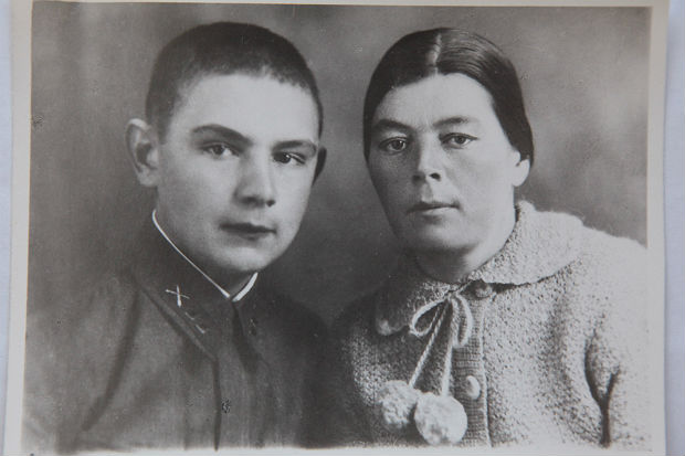 Будущий командир дивизиона «катюш» со своей мамой Александрой Ивановной Уткиной. Москва, фотоателье на Арбате. Апрель 1942 года. Фото из личного архива