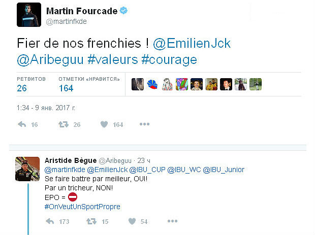 Примечательно, что твит Бегю опубликовал его товарищ по сборной Мартен Фуркад. В аккаунте самого Бегю эта запись по состоянию на время написания новости отсутствовала.