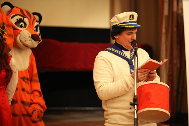 В нижнем фойе перед Малым залом ЦДЛ задолго до официального начала празднества разгуливали, бегали и вовлекали детей и взрослых во всевозможные подвижные и словесные игры артисты – аниматоры семейно-молодёжного театра «Игра» (художественный руководитель Андрей Защеринский), водились красочные хороводы.