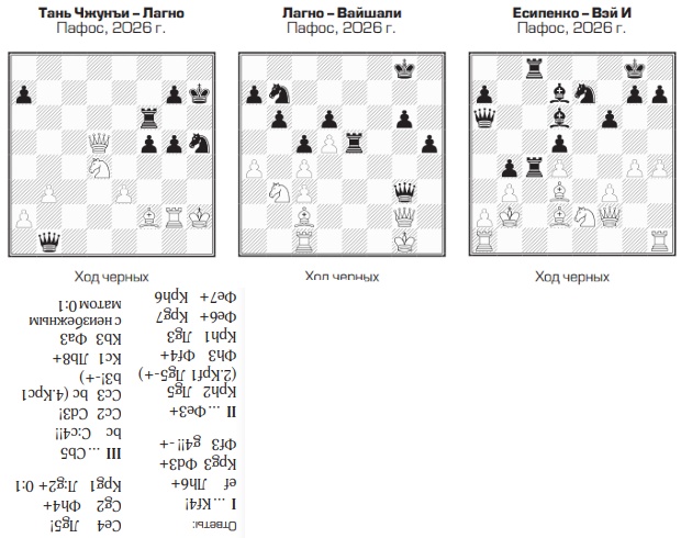 æåíñêîì òóðíèðå ïîëîæåíèå ãîðàçäî áîëåå çàïóòàííîå. Áåç ïîðàæåíèé èäóò äâå ó÷àñòíèöû — íàøà Àëåêñàíäðà Ãîðÿ÷êèíà è Àííà Ìóçû÷óê (Óêðàèíà), âêëþ÷åííàÿ â ïîñëåäíèé ìîìåíò âìåñòî îòêàçàâøåéñÿ èãðàòü (î ïðè÷èíàõ ìû óæå ðàññêàçûâàëè) Õàìïè Êîíåðó. Íî åñëè Ãîðÿ÷êèíà, íåñêîëüêî ðàç óïóñêàâøàÿ áîëüøîå ïðåèìóùåñòâî, âñå ïàðòèè çàâåðøèëà âíè÷üþ, òî íà ñ÷åòó Ìóçû÷óê äâå ïîáåäû, îäåðæàííûå íàä ðåéòèíã-ôàâîðèòîì êèòàÿíêîé ׿ó Öçèíüýð è íàøåé Åêàòåðèíîé Ëàãíî. Ñîîòâåòñòâåííî, Ìóçû÷óê ëèäèðóåò, à íà ïîë-î÷êà îòñòàåò Ðàìåøáàáó Âàéøàëè (Èíäèÿ), ïîëó÷èâøàÿ â ïîñëåäíåì òóðå ïåðâîãî êðóãà ïîèñòèíå öàðñêèé ïîäàðîê îò äðóãîé êèòàÿíêè, Òàíü ׿óíúè. Òà â ÷óòü ëó÷øåé ïîçèöèè çåâíóëà Âàéøàëè ôèãóðó, íå çàìåòèâ ýëåìåíòàðíîãî óäàðà íà óðîâíå 3-ãî ðàçðÿäà. 50% î÷êîâ êðîìå Ãîðÿ÷êèíîé èìåþò Ëàãíî è ׿ó Öçèíüýð, èãðàþùèå êðàéíå íåðâíî è ïðè äâóõ ïîáåäàõ ïîòåðïåâøèå óæå ïî äâà ïîðàæåíèÿ.  îáùåì, âñå åùå îòíþäü íå ÿñíî, è íàâåðíÿêà èñõîä áîðüáû ðåøèòñÿ â ïîñëåäíèõ òóðàõ. Áóäåì áîëåòü çà íàøèõ øàõìàòèñòîâ è íàäåÿòüñÿ, ÷òî âòîðîé êðóã ñëîæèòñÿ äëÿ íèõ áîëåå óäà÷íî.