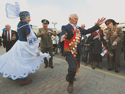 В Минске в торжественном шествии по проспекту Независимости приняли участие 6 тысяч человек. Некоторые ветераны не удержались и пустились в пляс.
