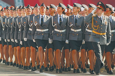 Парадный расчет курсанток МВД на Дворцовой площади в Санкт-Петербурге.