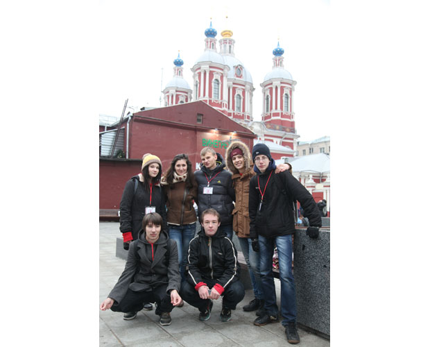 Следующая загадка: найти дом с крышей, похожей на звездное небо. Несложно: двести метров до ближайшего угла — и за ним открывается огромная барочная церковь священномученика Климента Папы Римского, синие купола которой, по распространенной на Руси традиции, покрыты золочеными звездами. Дальше нам предлагают найти творение архитектора-классициста Осипа Бове на улице, когда-то обозначавшей дорогу в Золотую Орду. Тоже очевидно: речь о Большой Ордынке, а прекрасное классицистское здание бросается в глаза: церковь Всех Скорбящих Радости. В храме надо посмотреть на массивный подсвечник с тремя скульптурными фигурами — апостолом Павлом, святым Александром Невским и... определить, кто третий персонаж. С рукописью под мышкой — явно Павел. Со шлемом — конечно, Александр. А кто с мечом? Тут ребята (16-летние учащиеся колледжа!) вспоминают про апостола Петра, отсекшего мечом ухо одного из тех, кто пришел арестовывать Христа. Ура! Добираемся до последнего напутствия: вернуться на площадь, откуда только что пришли, и это — финиш путешествия.