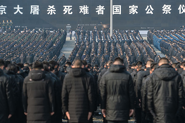 Церемония гражданской панихиды по жертвам трагедии прошла в четверг, 13 декабря, в Музее памяти жертв массовой резни в Нанкине (провинция Цзянсу).