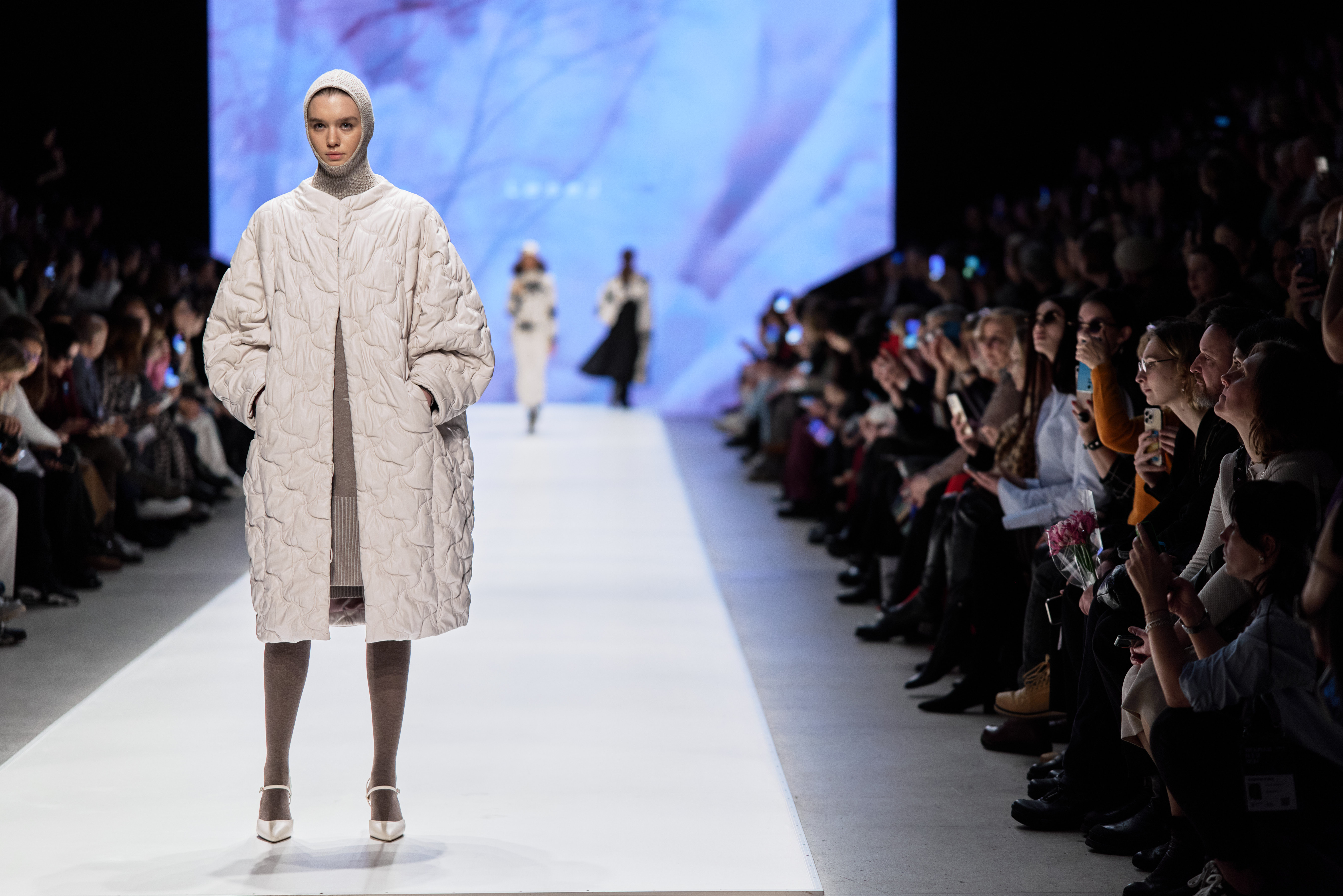 Московский бренд Lesel предложил комфортные силуэты – объемные стеганые пальто, надетые поверх макси-платьев, жакеты-оверсайз и удлиненные жилеты в паре со свободными брюками и уютным вязаным трикотажем. Значительная часть коллекции была выполнена в характерной для бренда сдержанной цветовой гамме с преобладанием серого, асфальтово-чёрного и добавлением темно-алого. Все эти образы легко представить как на подиуме, так и в динамичном ритме современного города.