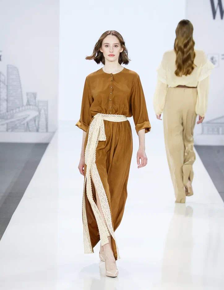 Бренд из Самары OA.CLTH.создает коллекции, долгое время сохраняющие свою актуальность и поддерживает осознанный подход к потреблению. Модели презентовали на подиуме внесезонные комфортные образы из натуральных материалов. Трикотажные платья, юбки, топы, показанные на подиуме, произведены по уникальной технологии с добавлением шелковой нити, и могут украсить любой повседневный образ.