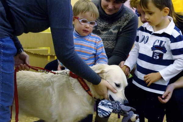 Знакомство с собакой. Вася Колесников и Дамир Салямов (слева направо). Фото предоставлены детсадом № 1021 Москвы