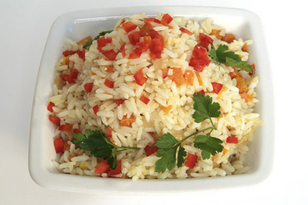 Разогреть сковороду и налить оливковое масло. Добавить нарезанный обычный лук и жарить, пока не станет прозрачным. Добавить порезанный лук-порей и морковку. Как только лук-порей обжарится, налить воды, чтобы только прикрыть овощи. Довести до кипения, добавить рис и варить до его готовности, помешивая.