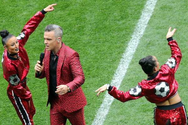 «Я так счастлив, я просто в восторге от того, что снова в России — на этот раз ради подобного уникального выступления. Я многого достиг, но открыть чемпионат мира на глазах у 80 тысяч зрителей на трибунах стадиона и миллионов любителей по всему миру — это просто детская мечта», — заявил при этом британский певец.