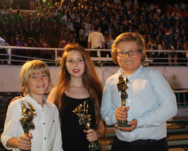 Юные актеры Ярослав Ефременко («Золотая рыбка»), Анна Потебня («Тайна снежной королевы»), Илья Костюков («Уроки выживания») получили призы за лучшее исполнение детских ролей