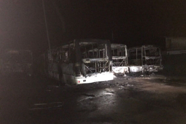 Сгоревший от поджога парк автобусов в Сосновом Бору Ленинградской области.Фото: Труд.ру
