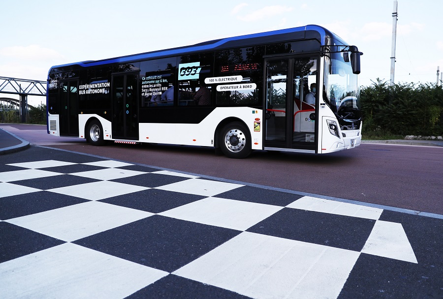 17 сентября, Париж. Самоуправляемый электробус китайской компании CRRC Electric Vehicle проходит испытания на дорогах столицы Франции. (Фото: Синьхуа)