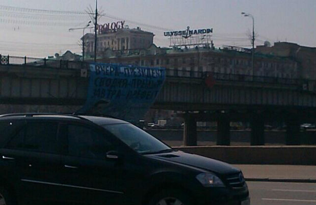 Ýòî íå ïåðâàÿ àêöèÿ îïïîçèöèè òàêîãî ðîäà çà ïîñëåäíèå íåñêîëüêî ìåñÿöåâ. Â ÿíâàðå 2013 ãîäà íà Áîëüøîì Êàìåííîì ìîñòó âûâåñèëè áàííåð ñ ýìáëåìàìè ýêñòðåìèñòñêèõ îðãàíèçàöèé.