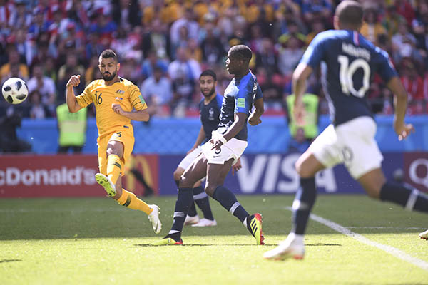 Открыл счет встречи Антуан Гризман, на 58-й минуте забивший гол с пенальти; на 80-й минуте команду вывел вперед Пол Погба. Среди австралийцев голом отметился Миле Йединак.