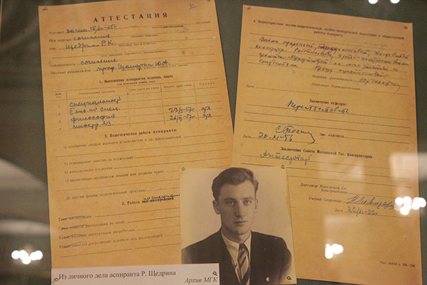 Но есть и еще более старый документ — подлинник прошения Константина Щедрина о поступлении в Московскую консерваторию в класс теории музыки. Дата — весна 1915 года. Так же, как и вступительные документы самого Родиона, разысканный в архиве вуза. Времена рифмуются, история русской музыки продолжается.