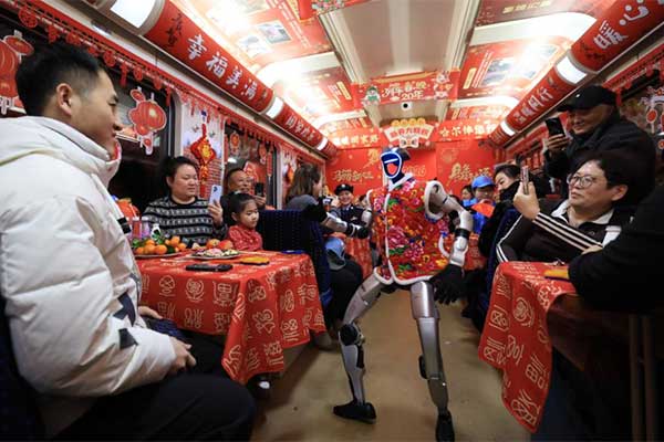 В поезде T48 сообщением Цицикар (провинция Хэйлунцзян) – Пекин роботы дали путешественникам новогодний концерт.