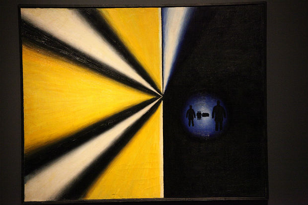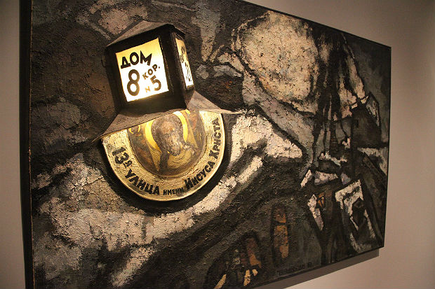 Искры осознания сопричастности соотечественников к общему контексту пролетают и там, где собраны эстетские объекты в белом или черном цвете, и в шумном, полном мигающих лампочек зале с кинетическими объектами. Жизнь берет свое, Европа оживает после войны... И все-таки вплоть до последнего зала мы мечемся между звонким биением ее пульса и тревожным затуханием, как в «Баррикаде» Гюнтера Юккера, построенной из мешков с песком и огромных, зло нацеленных в зрителя гвоздей. Как ни странно, эхом звучит живопись совсем иного по стилистике Виктора Попкова: шокирующая картина «Он им не завидует» — взгляд из могилы на похоронную процессию и проносящиеся в небе самолеты.