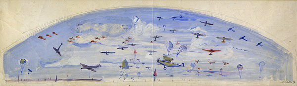 Александр Лабас. Эскиз панно «Авиация СССР» для Всемирной выставки в Париже 1937 года. 1936. Бумага, гуашь, акварель. Из собрания Ольги Бескиной-Лабас, Москва. Фото предоставлено организаторами выставки