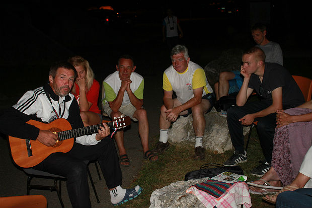 Вернувшись поздно вечером из местного шикарного Дома Культуры (местное его название — Дворец Музыки) после шикарного банкета, я пытался уснуть в спортивном зале. И хотя все двери этого просторного помещения были нараспашку, все равно мучила жара и духота. Я, по примеру многих других бегунов, слез с лежанки, сгреб в охапку все свои вещи и вынес на футбольное поле. Здесь уже спали человек 20. Расстелил на траве спальный мешок и лег сверху, не накрываясь, в одних трусах. Температура и ночью не падала ниже +30.