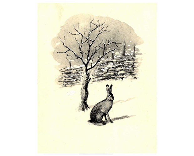 А. Н. Комаров. Заяц перед яблоней. Иллюстрация к рассказу Л. Н. Толстого «Яблоня». 1943 г.