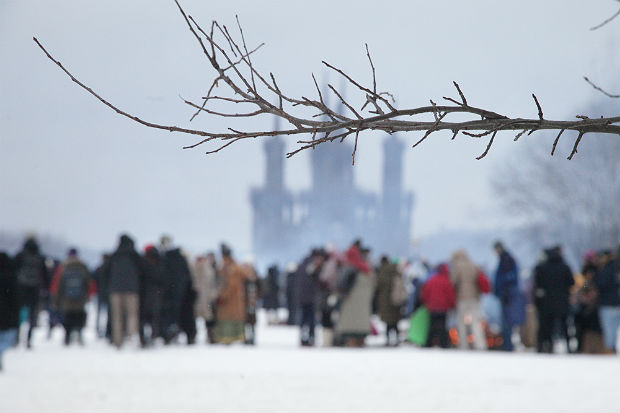 В субботу, 17 февраля, при большом скоплении местного и приезжего народа готика запламенела. Масленичный ритуал провел, рыча в микрофон, как древний бог огня Сварог, художник-акционист, друг Полисского и постоянный участник его придумок Герман Виноградов. Готическая «метелка» долго не хотела разгораться – но это тоже сработало на спектакль: в сгущающихся сумерках и снежном тумане перед нами мрачнел стрельчатый контур, мигая то тут то там беглыми огоньками, словно замок Черного властелина из сказочной эпопеи Толкиена. Ну а когда повалили клубы седого дыма размером с хорошее облако и вверх взмыли галактики искр, зрелище приобрело совсем космический колорит.